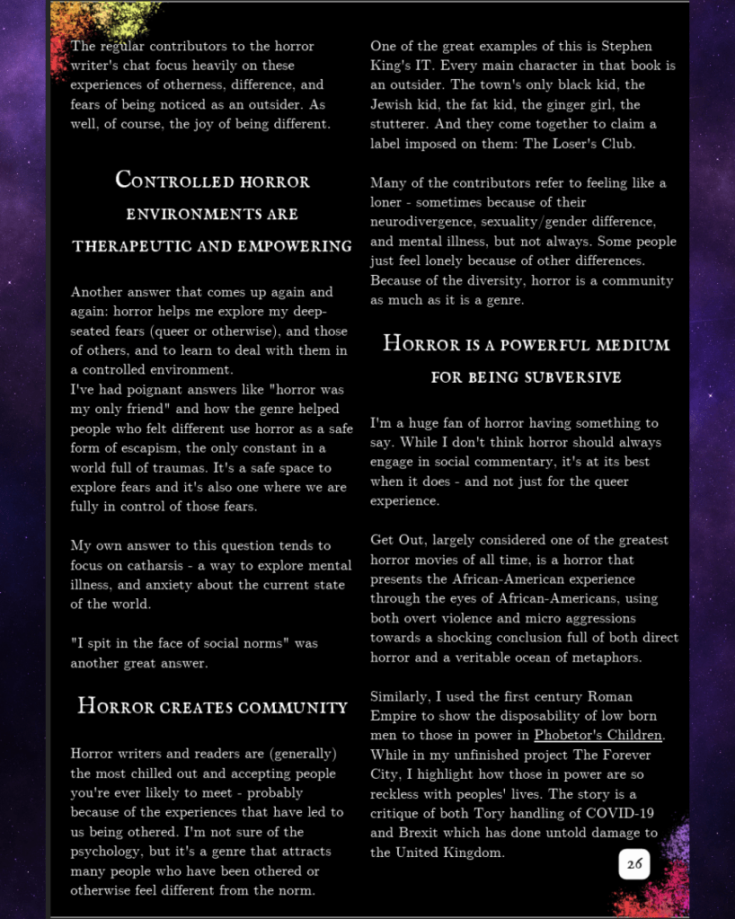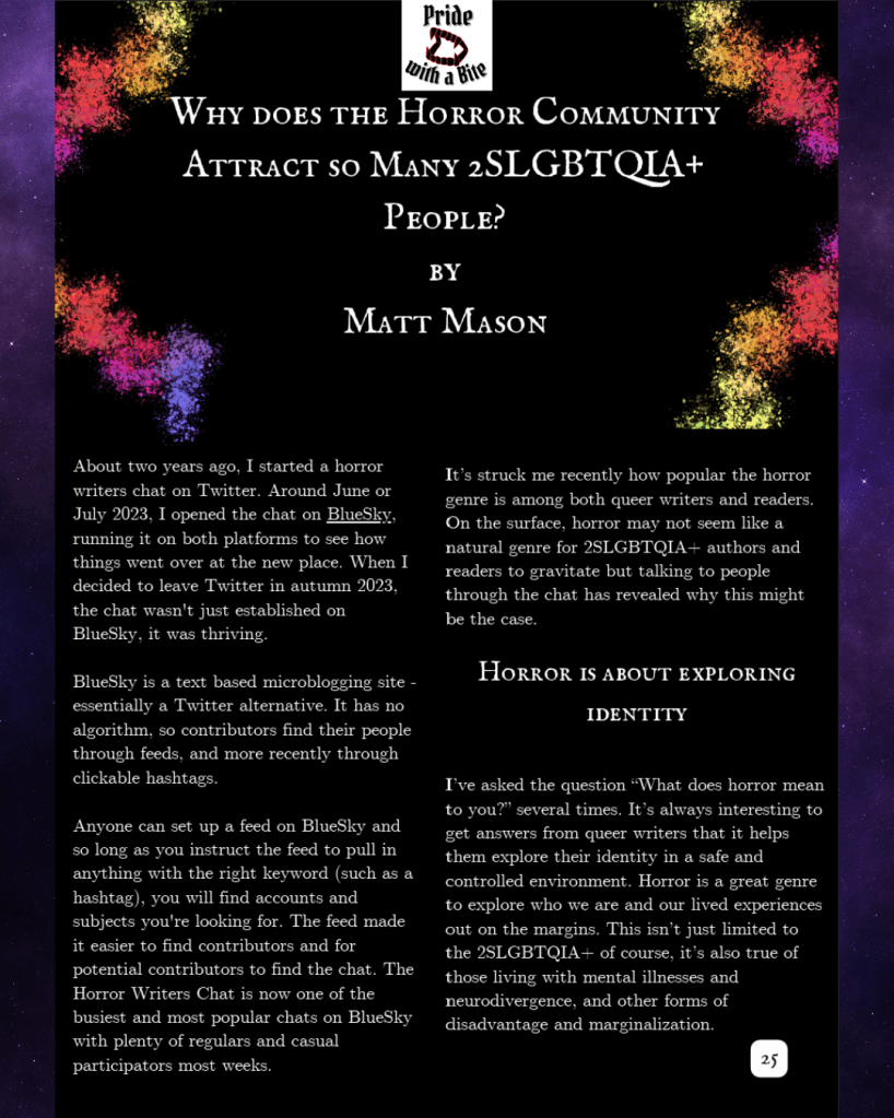 Since then, even when we dissolved our ezine and staff writers, Matt Mason was such a wonderful friend and support. He helped me learn how to best use BlueSky, and – for those who don’t know – Matt was the creator of the Horror Writer’s Chat on the platform.